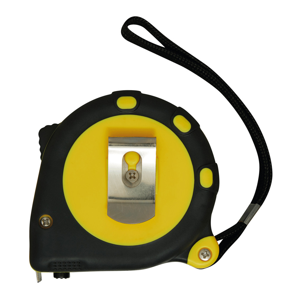 Rolbandmaat BASIC II (5 m) in rubberen houder met stopper, clip en draagkoord.meer