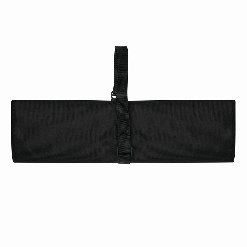 BBQ-schort met BBQ-bestek GREAT BBQ: met RVS BBQ-bestek met houten handvatten, met katoenen want. Schort is oprolbaar met een draagriem.