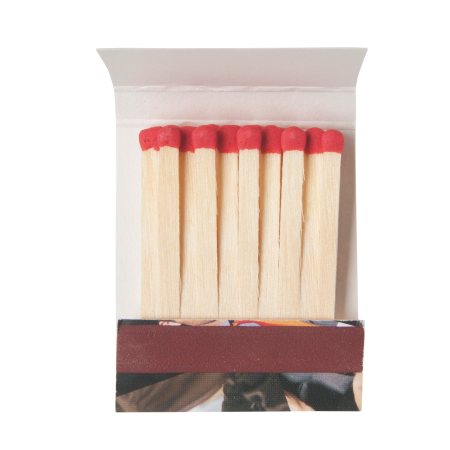 Lucifermapje met 20 kleine lucifers,UV lak met full colour opdruk, 50x53x5 mm