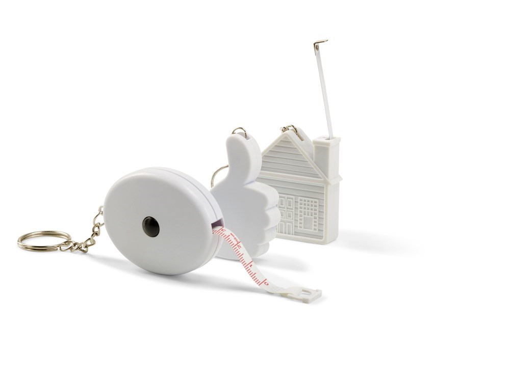 Kunststof sleutelhanger met rolmaat (2 meter), model 'huis'.meer
