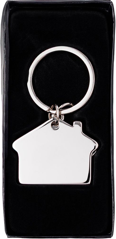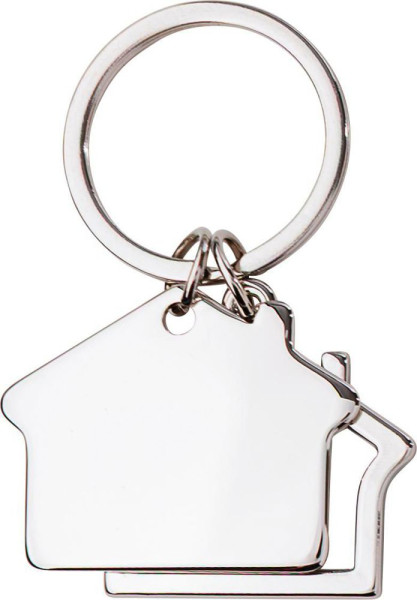 Tweedelige zink sleutelhanger, model 'huis', geleverd in een geschenkverpakking.meer