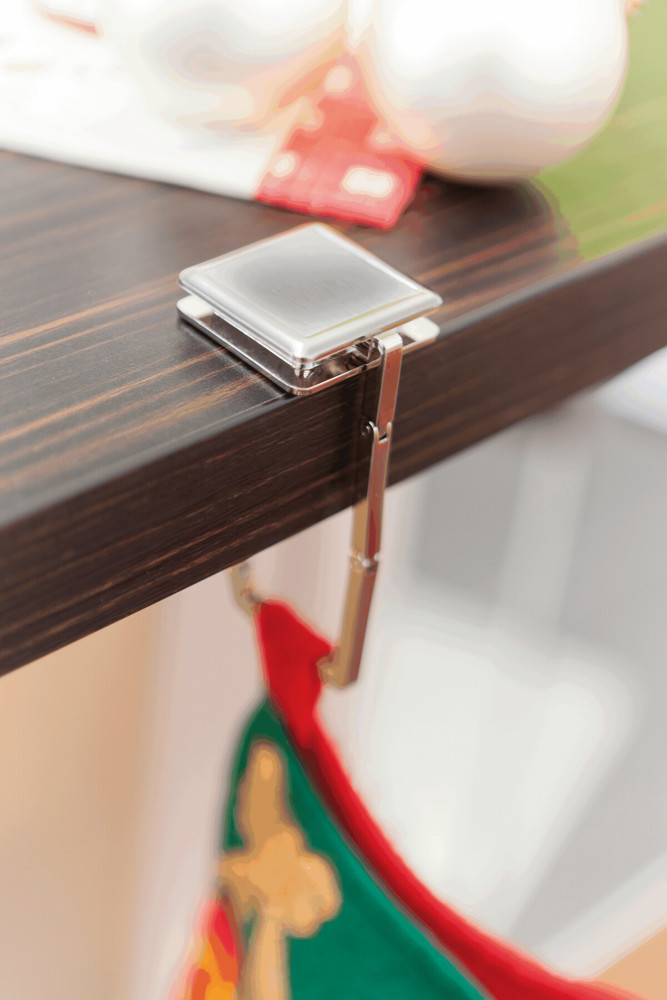 Uitklapbare haak MONTREUX voor het ophangen van o.a. een handtas. Van RVS en eenzijdig met rubber bedekt.