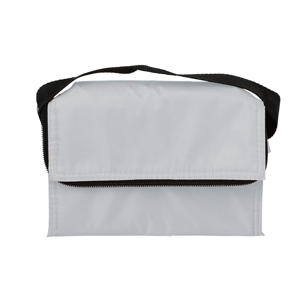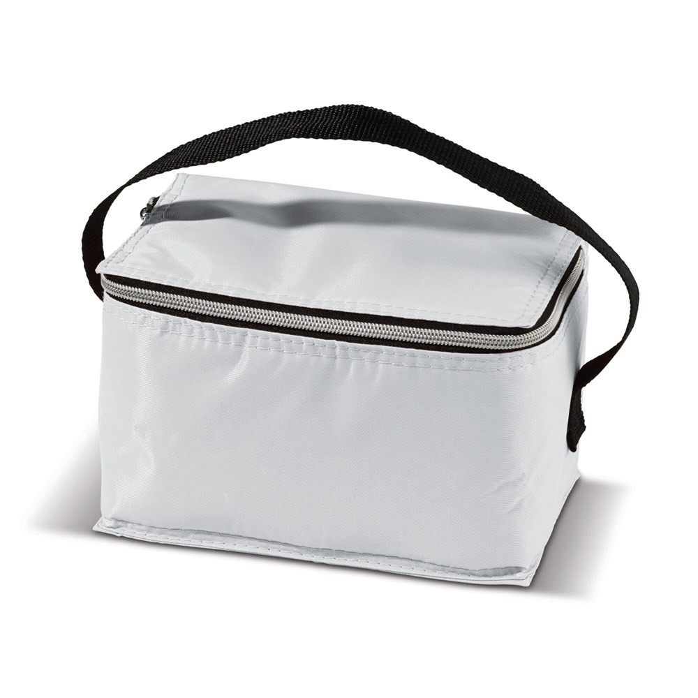 Polyester koeltas met draagriem. Compact en geschikt voor zes blikjes van 330ml. Afsluitbaar door middel van een rits.