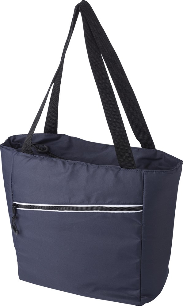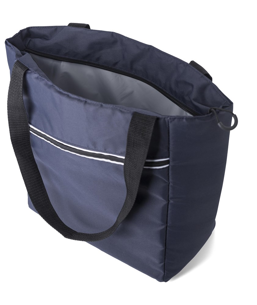 Pongee (75D) koeltas met PEVA binnenkant en voorvak met rits en lange hengsels.
