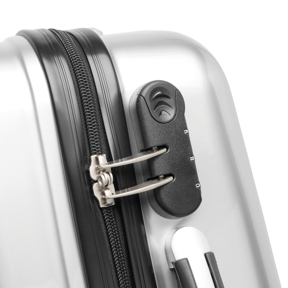 Trolley boardcase ST. TROPEZ in een polycarbonaat/ABS-mix. Deze hardcase trolley heeft een gevoerde binnenzijde, dmv scheidingswand met rits en pakbanden inpakmogelijkheden aan beide zijden, 4 lichtlopende wielen, 2 handgrepen, 4 steunen en een cijferslot. Buitenafmetingen geschikt voor de meeste low-budget airlines.