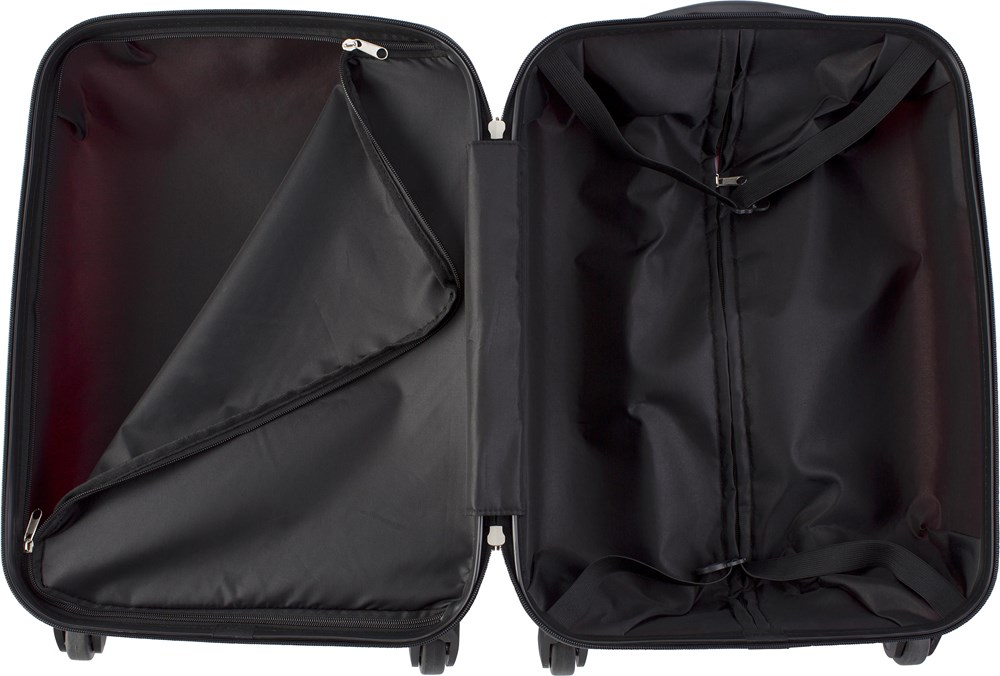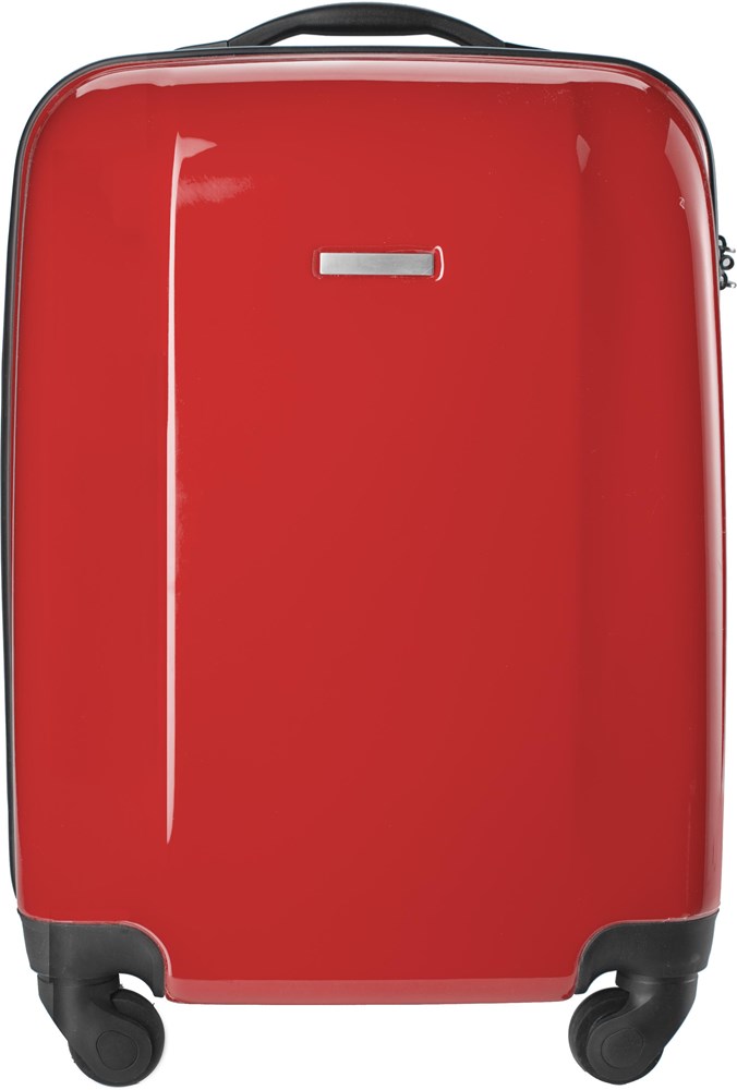 ABS trolley met ritsvak, met uitschuifbare greep, geïntegreerd nummerslot en met 4 zwenkwieltjes. Incl. graveerplaatje (los bijgeleverd).