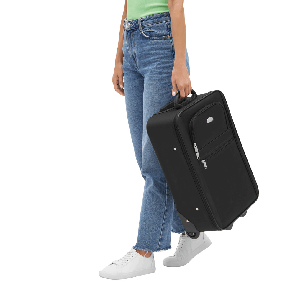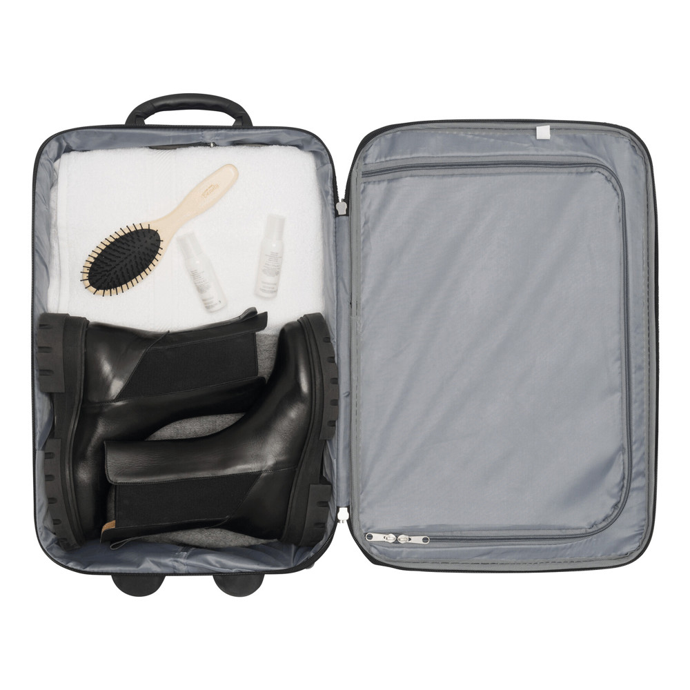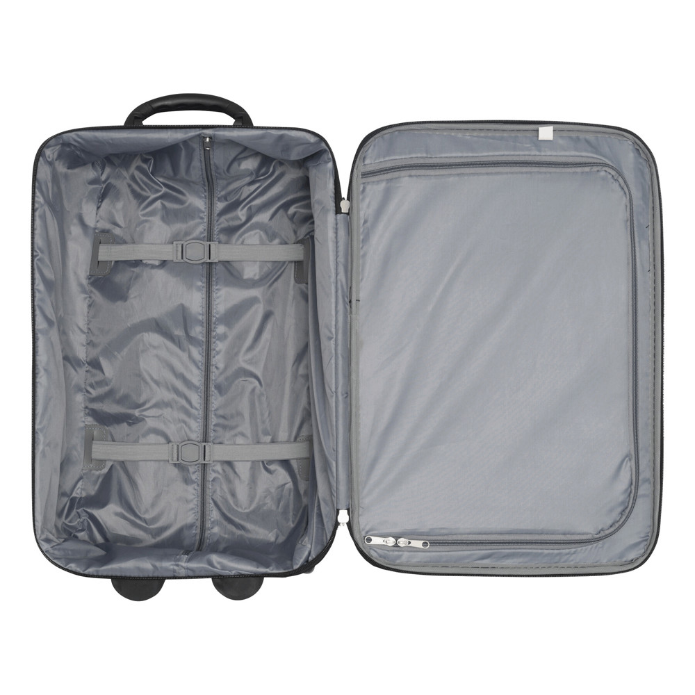 Trolley DUBLIN uit 600D polyester en EVA met gevoerde binnenkant, spanbanden, meerdere middels rits afsluitbare vakken, telescoophandvat, cijferslot en adreskaarthouder.