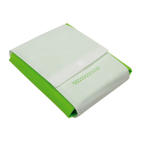 Deze opvouwbare boodschappentas (80 gr/m²) past in elke zak en sluit handig af met een drukknoop (360×410×80 mm).