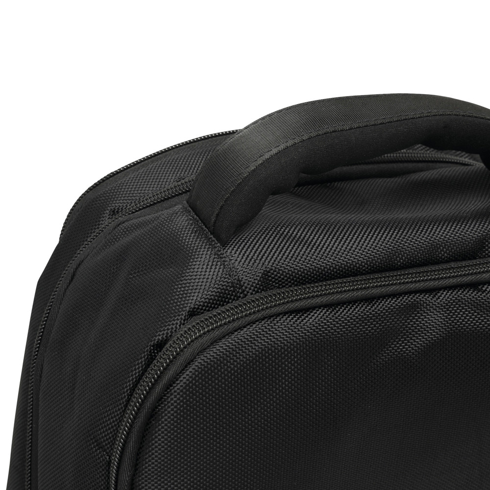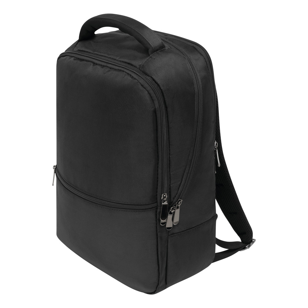 Rugtas OXFORD: klein voorvak met rits, 1 voorvak met kleine organiser, 1 hoofdvak met rits en 2 gefoamde insteekvakken voor media-apparatuur en 1 mesh-vak met rits, 1 gefoamd laptopvak met rits, gefoamde ergonomisch gevormde schouderbanden, gefoamde achterkant met reporterfunctie.