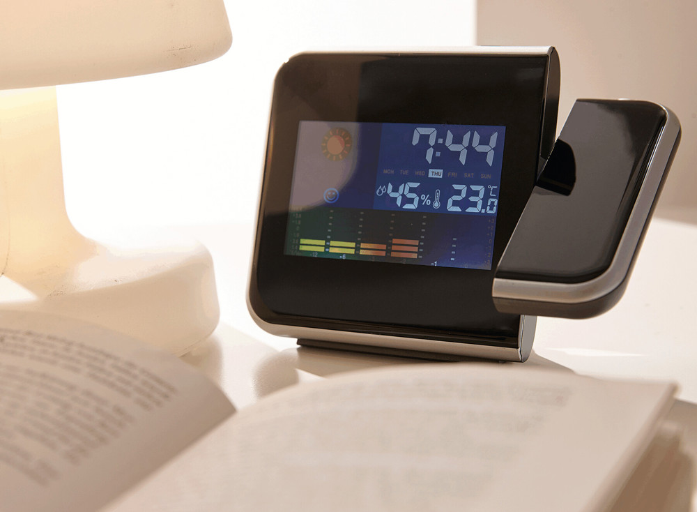 Projectieklok/ weerstation COLOUR PRO met LED-projector, alarmfunctie, weergave van datum en...meer