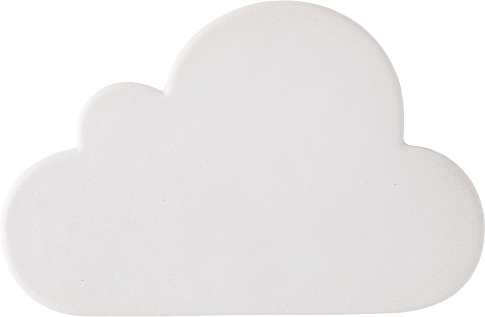 Anti-stress figuur van PU foam, model 'wolk'. Antistress artikelen kunnen alleen bedrukt worden in de kleuren zwart, wit, goud of zilver.