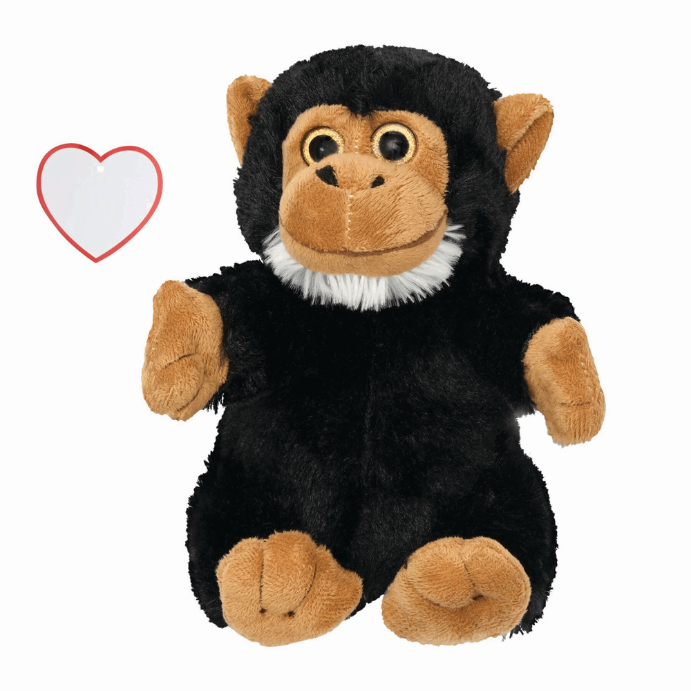 Pluche aap JERRIE: met zachte vacht in zitpositie en aangehecht hartje voor bedrukking.