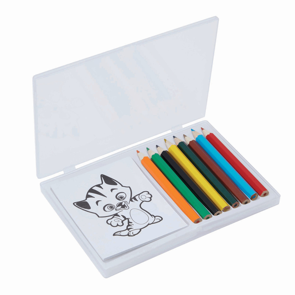 Tekenset CRAZY ANIMALS bestaande uit 12 tekeningen en 8 geslepen kleurpotloden in een tranparante...meer