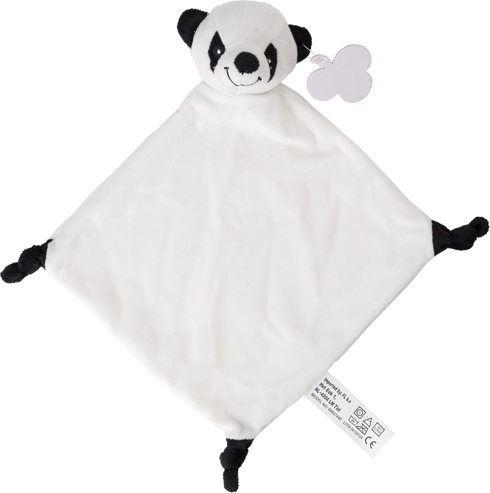 Baby 'tutdoekje' (100% polyester) met een dierenhoofd. Met kartonnen label voor bedrukking.meer
