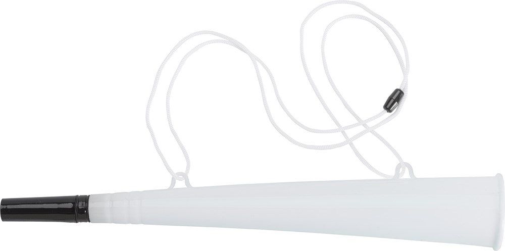 Kunststof stadion toeter, inclusief koord met veiligheidssluiting. Koordlengte: 100 cm