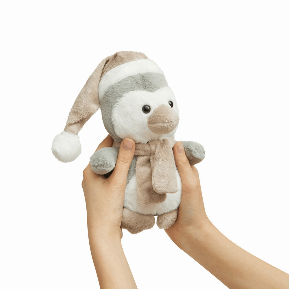 Pluche pinguin PIPITO met extra zachte vacht. De muts, neus, poten en sjaal zijn afgezet met stof. Incl hartvormig kaartje voor bedrukking.