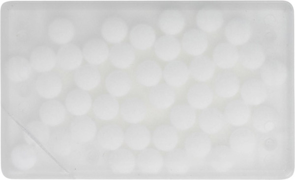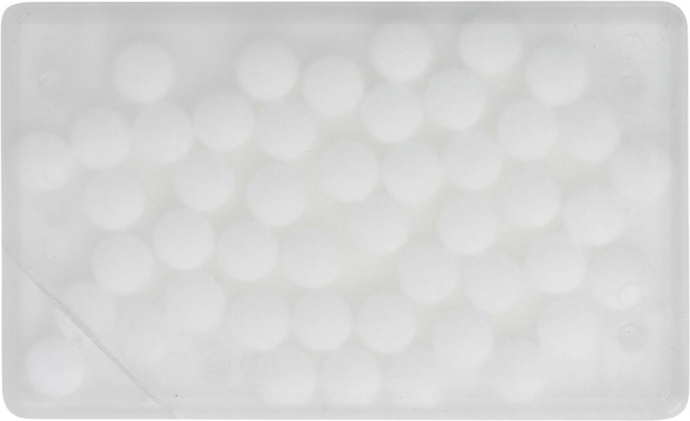 Frosted kunststof doosje met ca. 50 suikervrije mintjes, model 'rechthoek'.meer